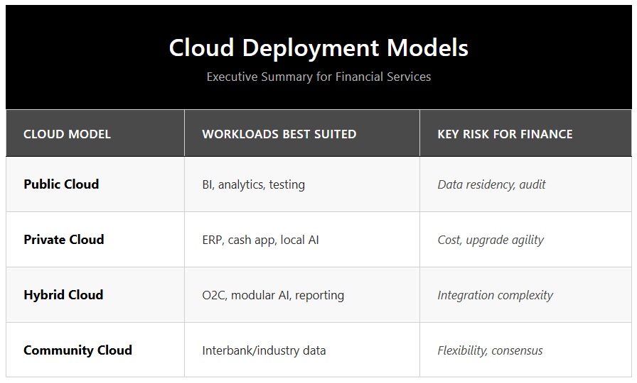 CFOs today face a complex landscape of cloud models that promise speed, flexibility, and lower cost. But behind each model lies a different trade-off between control, compliance, and scalability.